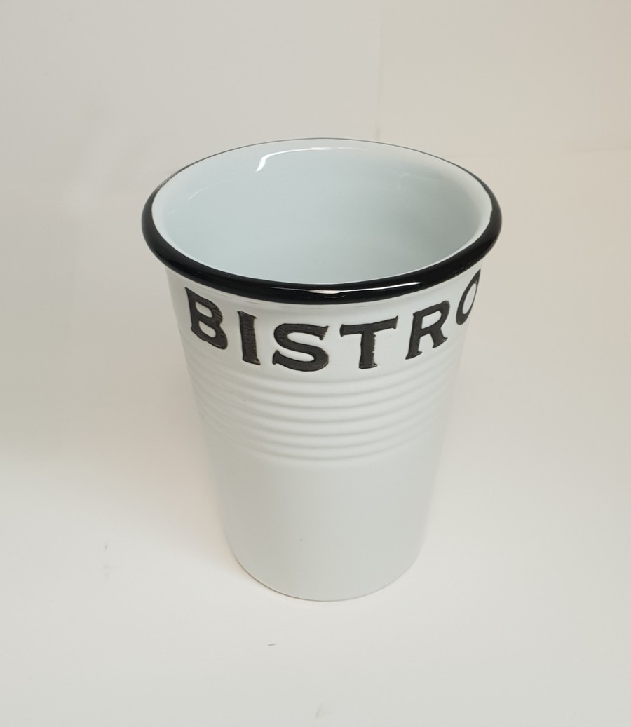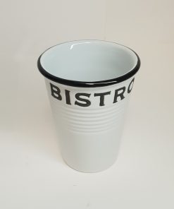 De forme conique annelé avec son inscription Bistro, son style bistro avec sa couleur blanc vieillie et rétro trouvera sa place dans toute les cuisine. Un petit cadeau utile et sympa qui ne manquera pas de faire plaisir.