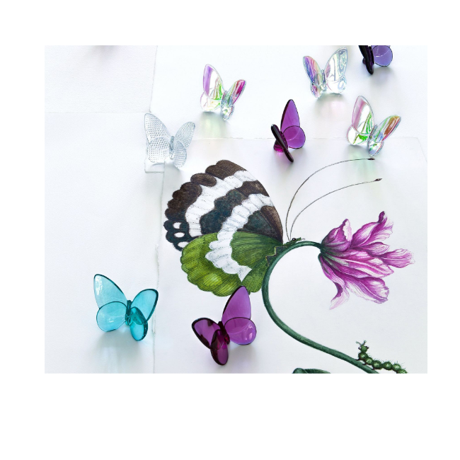 Fabriqué dans le prestigieux cristal de Baccarat, reconnu mondialement pour sa pureté et son éclat, ce papillon reflète la lumière avec un jeu de prismes captivant. Chaque facette est finement travaillée pour offrir un scintillement exceptionnel, sublimant ainsi n’importe quel espace.
